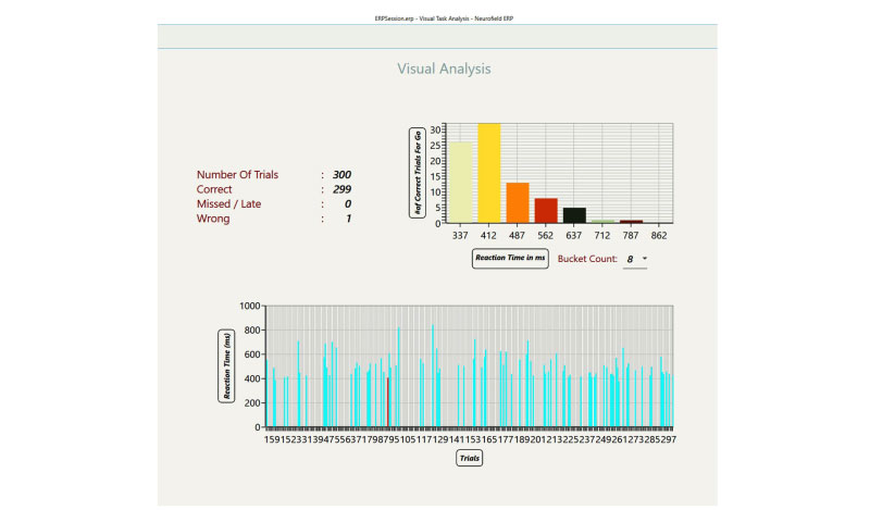 NeuroField ERP is FDA-cleared for providing continuous ERP tasks using visual, auditory, or combined stimuli, with programmable paradigms including Oddball and Matching formats with GO and NOGO conditions. The system generates quantified ERP data, applying artifact removal, grand averaging, spectral analysis, and region-based brain mapping. This module offers a structured way for the clinician to assess attention, response, and processing across surface and sub-cortical regions. $3k