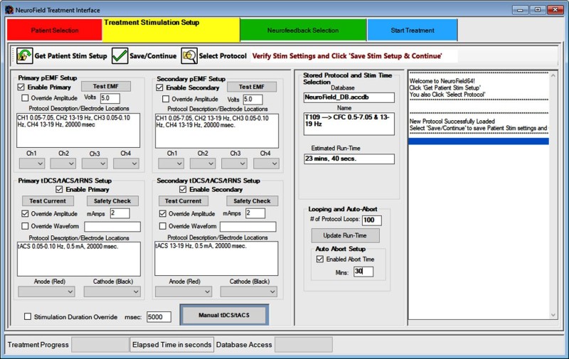 • Transcranial Advanced Pink Noise Stimulation (tAPNS). Pink Noise can be delivered from 10-9000 Hz. Specific ranges are defined in the NeuroField64 Software.